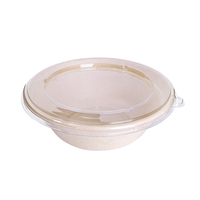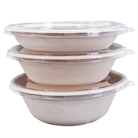 Ensaladera desechable sin PFAS biodegradable de 24/32/48oz, bagazo de pulpa redondo, envasado de alimentos para llevar con tapa